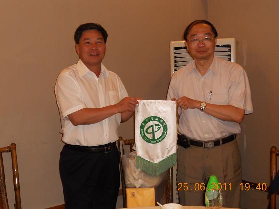 在随后的晚宴中,校党委书记周致纳与黄乃正教授进行了礼物交换。