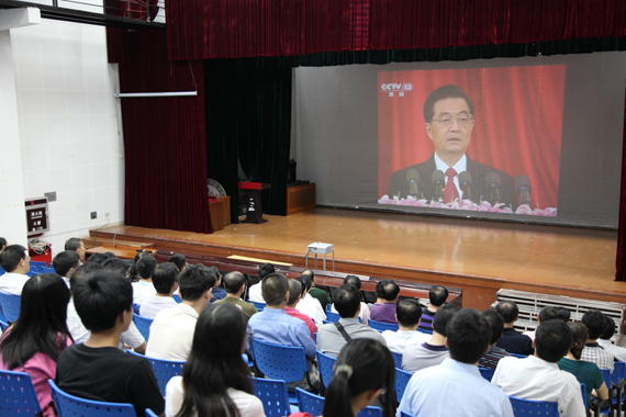 7月1日,庆祝中国共产党成立90周年大会在北京人民大会堂隆重举行。中共中央总书记胡锦涛在大会上发表重要讲话。开云中层以上党员干部和学生党员代表在学生活动中心小剧场集中收看了大会的现场直播。