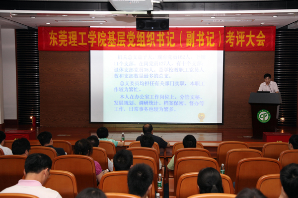 会上,各基层党组织书记(副书记)分别从德、能、勤、绩、廉五个方面进行述职。校党务部门、工会和共青团主要负责人以及各基层党组织委员认真听取了被考评人的述职报告,并依据其述职和两年来的实际工作表现,现场填写了考评表,对他们的工作作出客观、公正的评价。