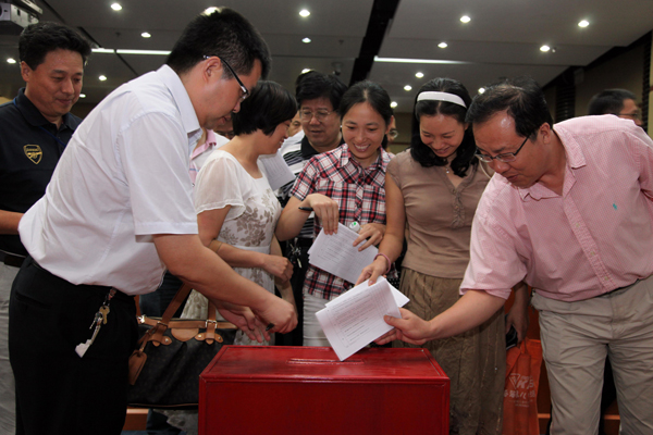 参会人员现场投放考评表。