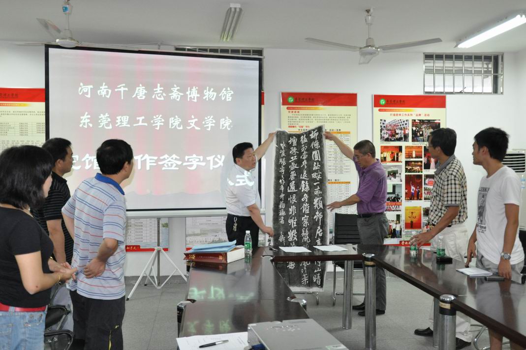 洛阳千唐志斋博物馆是我国著名碑刻专题博物馆,该馆珍藏了唐宋以来,尤其是唐代近三千种墓志铭,蕴藏着丰富的历史文化信息。本次跨地域院馆合作不仅能拓展教学视野,提升文化内涵,丰富办学模式,而且在学科建设的特色发展方面增添了积极因子。