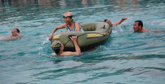 10月8日,校体育中心游泳池热闹非凡,开云第一届教职工游泳比赛在此举行。这次游泳比赛竞技项目与趣味项目相结合,共设有50米×10人自游泳混合接力、水中取宝、齐心协力接力比赛、水中拔河四个项目,各代表队的名次由四个项目的得分数相加排定。 最终,后勤集团代表队和教辅代表队并列冠军;外语系代表队和计算机学院代表队分别获得第三名和第四名。