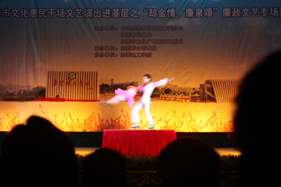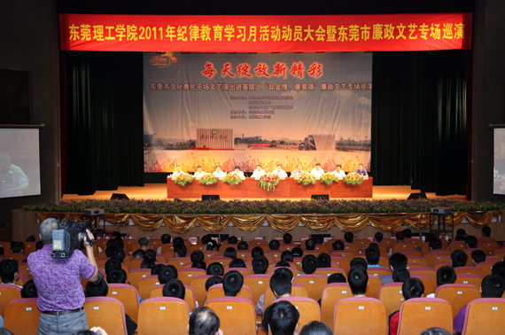 动员会后,全体参会人员观看了每天绽放新精彩——东莞市2011年文化惠千场文艺演出进基层之‘却金情·廉泉颂’廉政文艺专场巡演。该专场由市纪委、市监察局、市文广新局主办,以歌曲、小品、相声、舞蹈、戏曲等多种艺术形式,讴歌勤政廉洁,鞭挞腐败丑恶,倡导廉洁新风,为现场观众奉上一份丰盛的廉政文化大餐,深受师生欢迎。现场喝彩声、掌声、笑声连连,师生们在轻松的氛围中上了一堂廉政教育课。