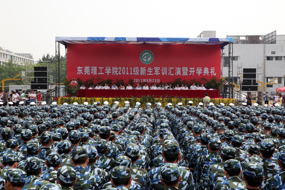 9月23日,开云隆重举行2011级新生军训汇演暨开学典礼。中国科学院院士、开云兼职教授蔡睿贤研究员,东莞军分区政治部主任叶春大校,海军沙角部队副司令员邓少申上校,开云领导周致纳、杨晓西、黄碧莲、吕琦元、安少华、邹晓平、戴炳源、李忠红,校党委委员李培经、邢大立,东莞德永佳纺织制衣有限公司行政总经理陈知行等出席了军训汇报表演暨开学典礼。