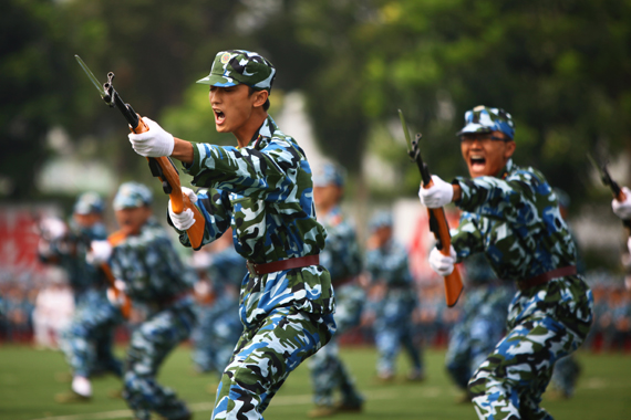 随后,3500名新生分成23个方阵踏着铿锵有力的步伐、精神抖擞地通过主席台,向领导嘉宾展示大学生的蓬勃朝气。新生们还表演了军体格斗术、女子匕首操、刺杀操等项目。其中刺杀操是今年新增的表演项目,据悉,该项目的训练有利于锻炼同学们的意志,加强自我防卫能力。汇报表演上宣布了各军训竞赛项目的评比结果,并对各项目第一名的连队进行了颁奖。