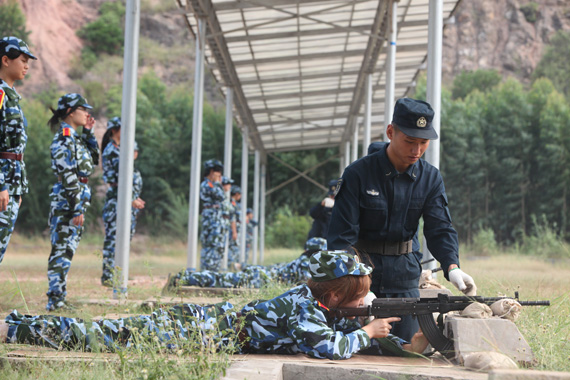 教官指导军训新生打靶。