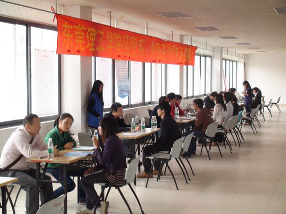 本次招聘会共有20多家东莞的外贸企业进场招聘。招聘会得到了两系学生的热烈响应,招聘会正式开始前会场已站满了学生。他们十分珍惜这次应聘机会。在面试过程中,应聘学生认真回答面试官的每一个问题,主动了解企业的用人与经营情况,与面试官进行充分的交流。