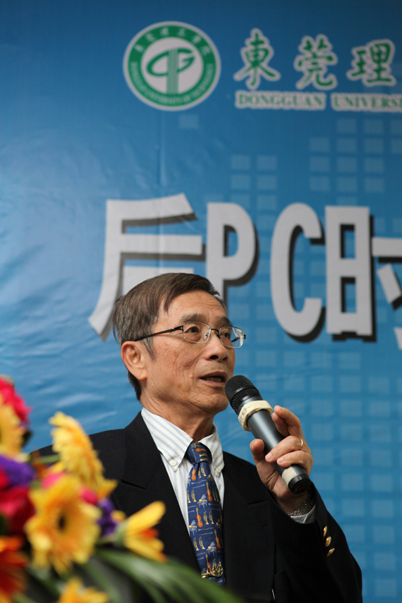 讲座上,张俊彦教授为莞工师生讲解后PC时代科技的发展与思考。张俊彦教授以以色列科学家丹尼尔·舍特曼等诺贝尔奖获得者的最新科研结果为例,指出创新思维对于科学研究的重要性。针对后PC时代,张俊彦教授认为随着苹果、google等新兴公司的崛起,手机、平板电脑的市场都出现了新的变革,特别是Smart Phone的兴起,一些如诺基亚、摩托罗拉等过去的行业巨头出现了市场份额下降的颓势。而以Android为代表的开源操作系统对微软Windows操作系统带来严峻的挑战。在后PC时代,人们将会面对层出不穷的科技给生活带来的巨大变化,大家应该主动迎接挑战,接受新的理论。