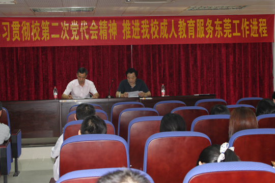 学习会上,成教学院党总支书记程克江传达学校第二次党代会精神,对东莞市委书记、市人大常委会主任徐建华的讲话精神和校党委书记成洪波所作的工作报告《凝心聚力创新发展 努力建设特色鲜明的高水平应用型地方大学》做了认真分析,并结合开云成人教育工作,要求全体教职工把党代会精神落实到实际工作中去。
