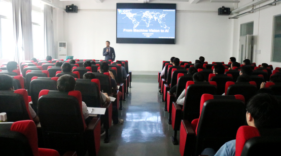 卢盛林博士向学生们讲解了机器视觉的基础知识,内容包括图像分析算法、选择问题、神经网络等多个方面,为学生们的毕业设计以及未来就业行业选择提供了重要依据。针对学生的专业,还介绍了职场素养的重要性,并传授了拥有就业竞争力的宝贵经验。