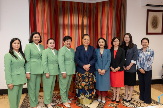 汤加王后娜娜茜帕乌与代表团妇女成员合影