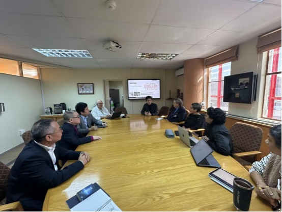 在南非德班理工大学,团组与该校国际交流与合作处处长Lavern Samuels、教务工作部、计算机学科负责人等进行交流与座谈,座谈就加强两校间学术科研及师生交流达成共识,后续,双方将成立交流专项工作小组,在计算机科学与技术领域推进师生互访、教师能力提升培训等合作。