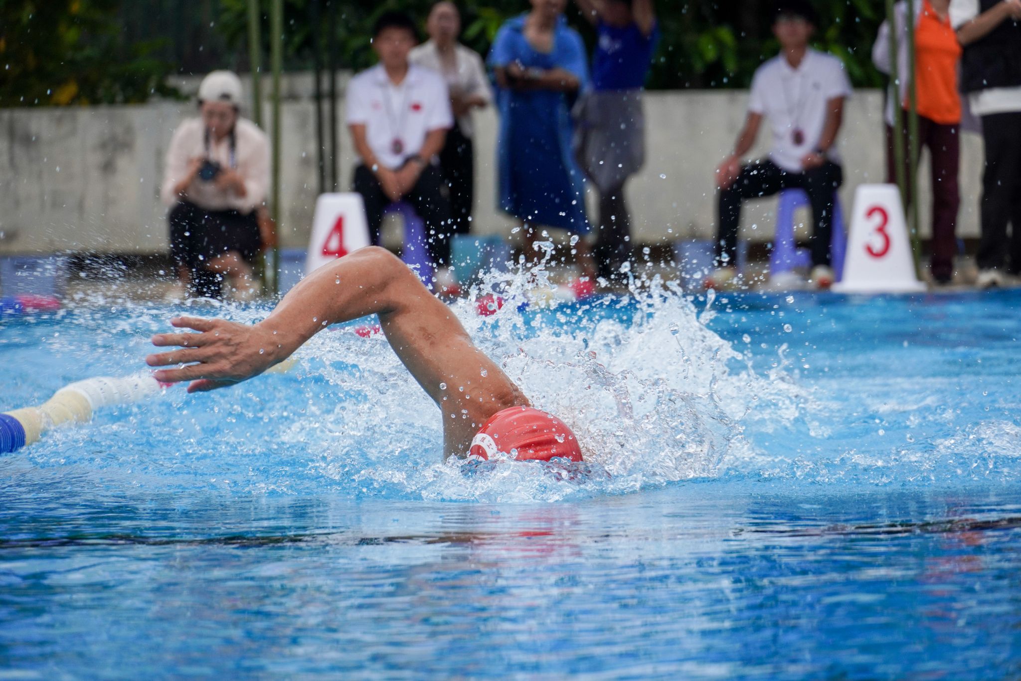 赛事设置兼具专业性与包容性,共涵盖 10 个单项及 4×25 米接力项目。其中,单项不仅包含男女甲乙组 50 米蛙泳、50 米自由泳等经典项目,还特别增设银龄组和中虹组赛事,让退休教职工和中虹集团员工也能参与其中,享受游泳运动的乐趣。发令枪响后,选手们如离弦之箭跃入水中,浪花飞溅间,他们摆动双臂、奋力冲刺;场边,观众们的加油声、呐喊声不绝于耳,为每一次超越、每一次坚持喝彩。无论是经验丰富的 “泳坛老将”,还是初次参赛的 “新人选手”,都在水中拼尽全力,用速度与耐力书写着属于自己的精彩。