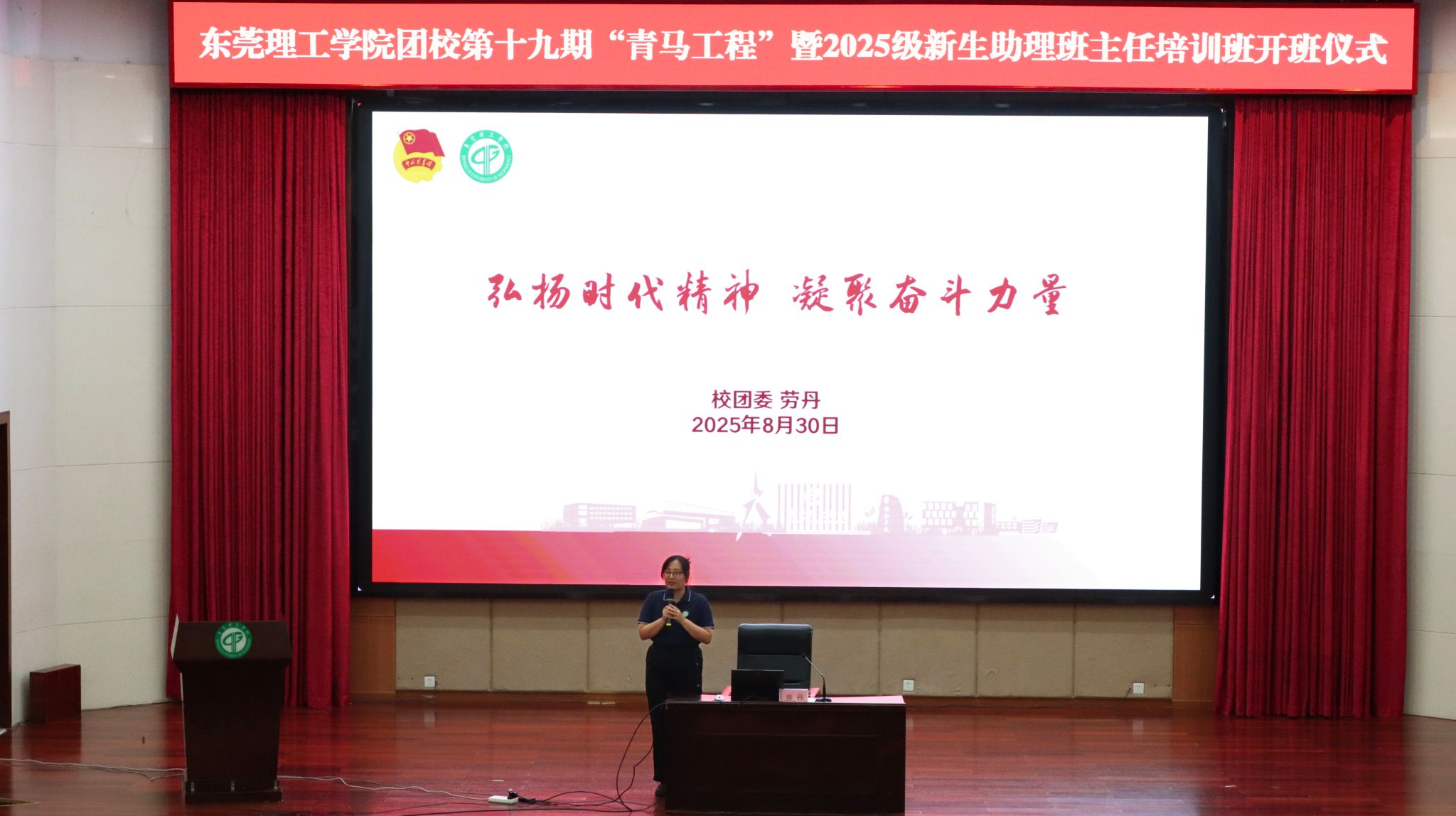 在理论授课环节,学生工作部部长黄金和围绕“坚定信念,在莞工申博更大的新征程上奋力书写挺膺担当的青春篇章”主题,结合朋辈育人典型案例,深入浅出地阐述了学生骨干在学校高质量发展中的使命担当。