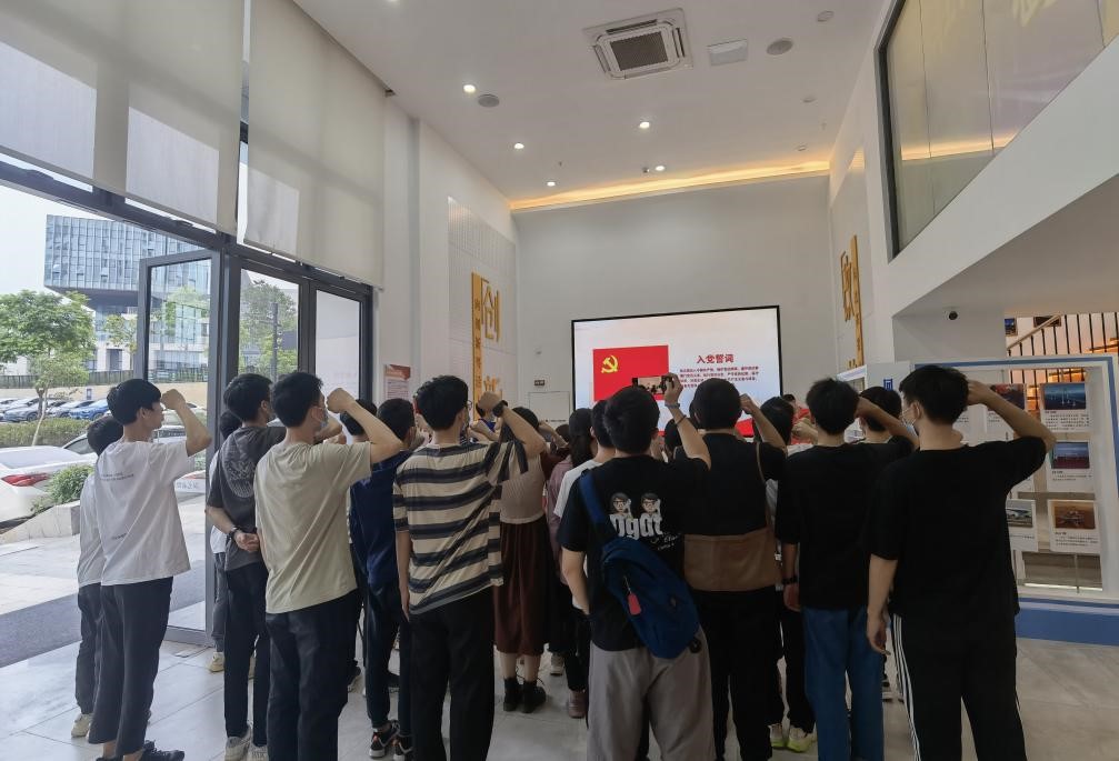 为推进党史学习教育走心走深走实,10月28日,材料学院学生党支部赴东莞松山湖国际创新创业社区“阳光雨”党群服务中心开展科技创新党史学习教育和党性洗礼活动。本次党日活动由学院辅导员杨壮鹏老师带队,学生支部三十余名党员参与活动。