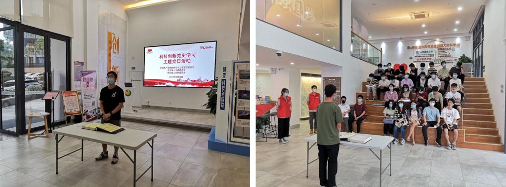 紧接着活动进入第二环节——“学”:全体师生党员认真有序地参观了中心科技创新党史展,回顾了建党一百周年以来国家科技进步的各大历史事件。随后一段科技创新党史短视频,更是将党员们带入了那段自强不息的峥嵘岁月。观影之后,大家积极踊跃地参与了相关科技创新党史抢答知识竞赛。
