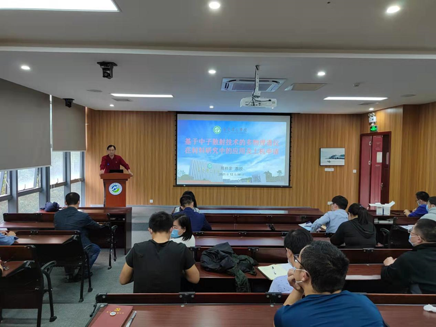 中国散裂中子源自2018年8月23日正式运行以来,吸引了来自大湾区乃至全球相关领域的大批科技工作者前来参与研究,大科学装置的虹吸效应持续显现,有效支撑了大湾区科技创新发展。为进一步提高多物理谱仪使用效果,做好上机前的样品环境准备工作,12月16日,材料科学与工程学院特邀请科技创新学院院长周梓荣教授为学院全体教师作《基于中子散射技术的多物理谱仪在材料研究中的应用及上机申请》主题报告。
