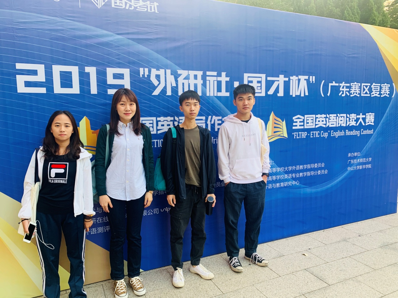 11月9日,2019年全国英语阅读比赛暨“外研社﹒国才杯”阅读比赛广东赛区决赛和2019年全国英语写作比赛暨“外研社﹒国才杯”写作比赛广东赛区决赛在广东技术师范大学成功举行。本次比赛由教育部高等学校大学外语教学指导委员会、教育部高等学校英语专业教学指导分委员会、中国外语与教育研究中心和外语教学与研究出版社主办,广东技术师范大学承办。经过全省各高校初赛,共有来自54所高校的198名选手和来自63所高校的140名选手分别参加了本次阅读比赛和写作比赛。在开云刘萍老师的带队下,开云生态环境与建筑工程学院的苏城远同学和网络空间安全学院的王佳航同学参加了本次阅读比赛;经济与管理学院的张丽君同学参加了本次写作比赛。