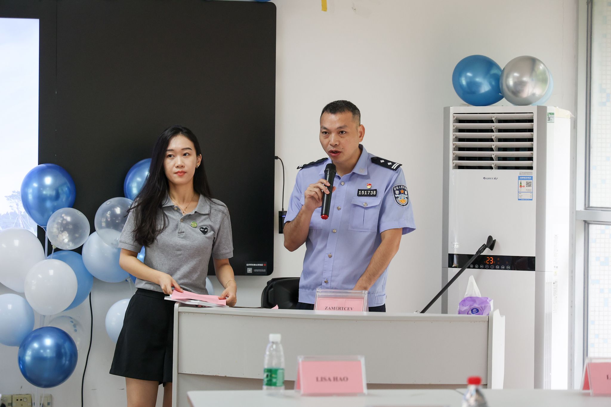 莞城公安分局李警官和辅导员陈海丹老师一道,为留学生们带来了出入境签证政策宣讲和安全知识讲座,帮助同学们进一步了解政策要求,规范学习生活。