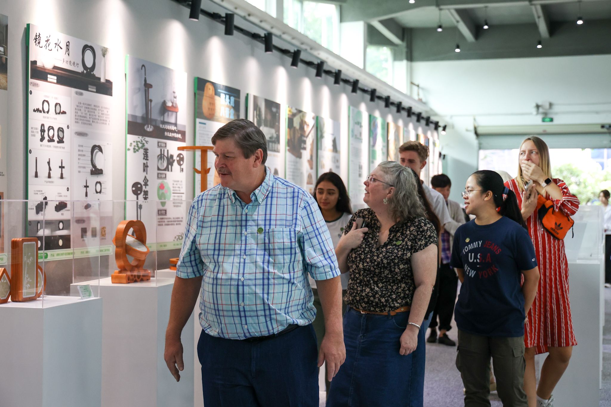 在“破冰”环节,同学们做自我介绍并分享在中国的生活体验和学习经历,对老师们的热情与欢迎表示感谢,也对新学期充满了期待。为让来华留学生更好地了解学校、适应新环境,尽快融入校园文化生活,学院还组织同学们参观了体育场、图书馆、饭堂和学校毕业生设计展。