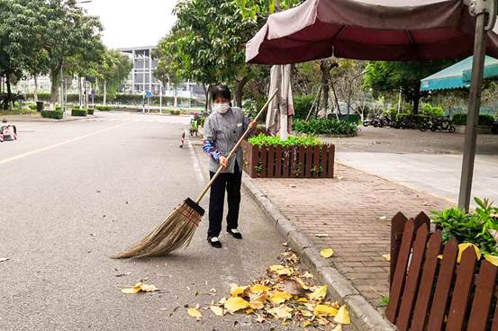 “每天五点多起床,白天除了吃饭几乎都在干活了,中午很少有休息。疫情当下,我们扫几片叶子也没什么,作为中国公民,有责任与义务为国家做点事。领导对我们很关心很体恤,我们干活也很乐意。”黄春菊说道。
