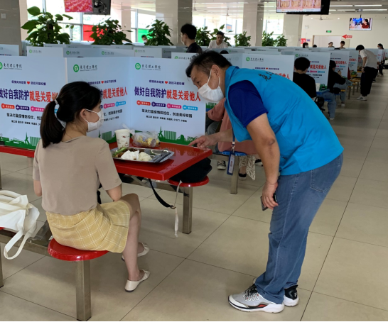 13日、14日学生考试当天,后勤管理办统筹协调,抽调了40名工作人员协助供餐服务和维持现场秩序;卫生所医务人员在三个进校通道、三个食堂、考场、校医室的待转运区、临时医学分诊区值守,及时应对学生突发医疗情况;清洁工来回走动消杀公共接触点和场地;水电工做好现场维护工作;食堂共接待就餐4千余人次。