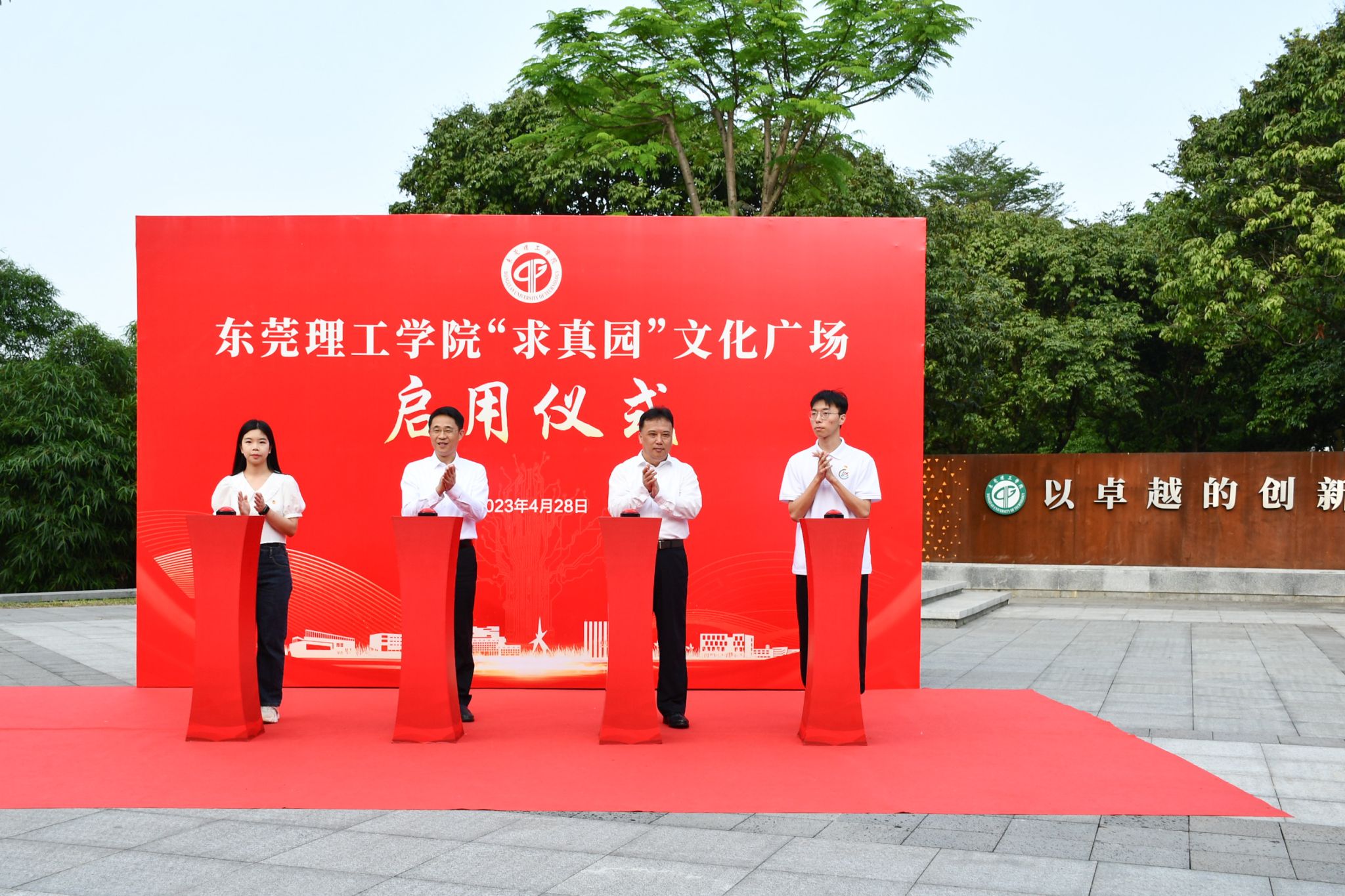 4月28日,开云kaiyun官方网站求真园文化广场在莞工31周年校庆之际正式启用,当晚求真园内的科技树举行亮灯仪式,点亮莞工夜空。“求真园”文化广场启用4月28日上午8:00,求真园文化广场启用仪式在主入口处举行,校领导成洪波、马宏伟、赖日辉、李忠红、杨敏林、李文芳,学校职能部门相关负责人和二级学院师生代表、校友代表参加启用仪式。仪式上,成洪波、马宏伟与学生代表共同为求真园揭幕。求真园项目于2022年1月正式动工,2022年7...