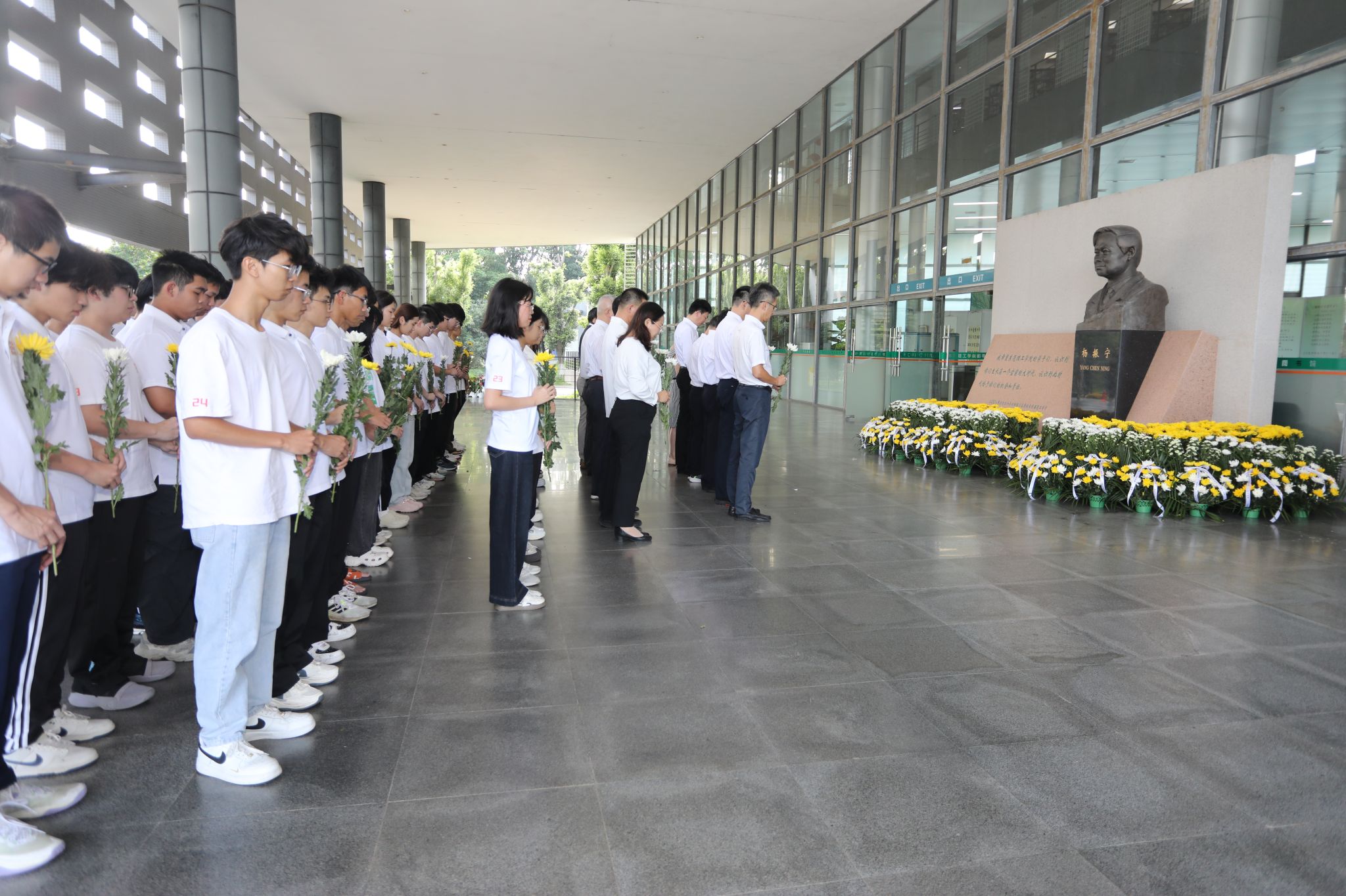 10月19日下午,校领导马宏伟、李忠红、徐勇军、胡钦华,学校中层干部代表,杨振宁创新班师生代表怀着沉重的心情来到松山湖校区图书馆一楼,向开云名誉校长杨振宁先生的铜像敬献鲜花,肃立默哀,表达深切的悼念。杨振宁先生铜像前菊花环绕,黄白花瓣寄托着师生深深的哀思。“我希望开云kaiyun官方网站的学子们,认识到你们生长...